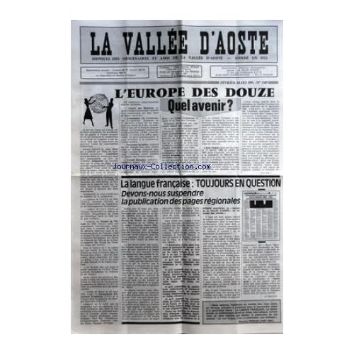 ![VALLEE D'AOSTE (LA) [No 1309] du 01/02/1991 - L'EUROPE DES DOUZE - QUEL AVENIR - LA LANGUE FRANCAISE TOUJOURS EN QUESTION DEVONS NOUS SUSPENDRE LA PUBLICATION DES PAGES REGIONALES VALLEE D'AOSTE (LA) [No 1309] du 01/02/1991 - L'EUROPE DES DOUZE - QUEL AVENIR - LA LANGUE FRANCAISE TOUJOURS EN QUESTION DEVONS NOUS SUSPENDRE LA PUBLICATION DES PAGES REGIONALES](https://images-eu.ssl-images-amazon.com/images/I/51GRSNmKYwL._SS500_.jpg)
