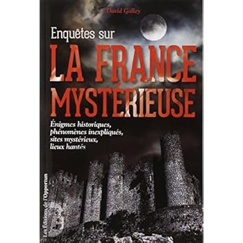Enquêtes sur la France Mystérieuse David Galley Un tour de France du mystère et de l'étrange. 33 enquêtes richement illustrées La Malédiction de la Pyramide de Couhard (Saône-et-Loire) Le Mystérieux tombeau de la Comtesse Demidoff (Paris, Père-Lachaise) Le Château de Montsegur et le trésor Cathare (Ariège) La Tombe Secrète de Jeanne d'Arc (Meurthe-et-Moselle) L'Énigmatique Peuple des Cagots (Sud-Ouest) Le Trésor de Marthille (Moselle) Le Carre Sator (Opède Le Vieux) La Fosse Dionne, Source Sacree Et Maudite (Tonnerre) La Cabane Magique de Pierre Martelanche (Saint-Romain-La-Motte) L'étonnant Cimetière de Loyasse (Lyon) Quand le Vatican ordonne la destruction du Monastère de Carol (Ariège) Le Château le plus hanté de France (Vienne) Les Ummites : les extra-terrestres qui communiquent par courrier ! (Alpes-de-Haute-Provence) Le Tombeau disparus des Bergers d'Arcadie Le Fantôme du cure d'Incarville (Eure) Les lumières de Vezelay (Yonne) La Tombe Mystérieuse d'Arles-sur-Tech (Pyrénées-Orientales) Le Trésor des Templiers à Gisors (Eure) Un Livre et une Tombe codés par un Abbé (Rennes-Les-Bains) Le chat du château de Combourg L'abbaye de Mortemer (Seine-Maritime) Cavites circulaires et mystérieuses à Langatte (Moselle) L'Apparition de La Croix de Migne (Indre) Des Ovnis sur les tapisseries de Beaune (Côte-D'or) La Tombe d'Allan Kardec (Paris) L'Énigme Nostradamus (Alet-Les-Bains) Les Menhirs de Bourgogne Nicolas Flamel avait -il découvert la Pierre Philosophale ?. . L'AUTEUR David Galley est producteur. Il a signé de nombreux reportages sur les phénomènes inexpliqués et les énigmes historiques. Pour la première fois, il réunit dans un livre richement illustré 33 enquêtes. Broché=320 pages. Editeur =Opportun (12 juin 2014). Collection =HORS COLL. Langue =Français. ISBN-10=2360753142. ISBN-13=978-2360753147. Dimensions du produit=14 x 2,5 x 21 cm. Moyenne des commentaires client =4.4 étoiles sur 5 14 commentaires client. Classement des meilleures ventes d'AmazonHistoireAtlas historiques et ouvrages de référenceParanormal et parapsychologie=181.596 en Livres (Voir les 100 premiers en Livres) .zg_hrsr { margin: 0; padding: 0; list-style-type: none; } .zg_hrsr_item { margin: 0 0 0 10px; } .zg_hrsr_rank { display: inline-block; width: 80px; text-align: right; } n°78 dans Livres > Dictionnaires, langues et encyclopédies > Encyclopédies et dictionnaires thématiques > Histoire, Sciences humaines et Spiritualités > n°121 dans Livres > Histoire > n°338 dans Livres > Esotérisme et Paranormal >.33 histoires qui pourraient se répartir entre celles qui conservent leur mystère et celles pour lesquelles une explication logique est donnée et qui font donc l'objet d'une démystification. Si certaines histoires avaient déjà été évoquées dans les médias, la plupart sont totalement inconnues.Les énigmes historiques et surtout l'ésotérisme prennent le pas sur le surnaturel.Lecture facile à recommander. L'auteur ne fait pas dans le sensationnalisme, son ouvrage est très sérieux.. Je viens de terminer ce bouquin que ma délicieuse femme m'a offert. C'est tout simplement bluffant ! Pour une fois dans ce domaine, ce n'est pas débile ou du déjà vu.On voyage dans des histoires mystérieuses en ayant des pistes de réflexion intelligente. Pas mal d'histoires que je ne connaissais pas. Pour info, c'est un livre qui se "picore". Les chapitres sont assez courts (7 ou 8 pages) avec de nombreuses photos. Il y a aussi quelques erreurs dans les légendes des photos, mais le fond reste passionnant. Ces petites histoires vraies et mystérieuses vont me manquer ce soir ! Vivement le tome 2 !. Un excellent moment que de lire cet ouvrage ! Beaucoup d'histoires qui poussent à s'interroger sur ce qui est du domaine du réel ou de l'irréel, du possible ou de l'impossible... Je recommande vivement pour les prochaines vacances.. Un excellent livre que j’ai lu en 2 jours, qui vous entraîne au cœur de ces histoires inexplicables croyances, mythes et légendes,lieux hantés, tombeaux abandonnés….La France est un beau pays, riche pour son histoire, ces sites, pour ces mythes et légendes.En refermant ce livre, l’envie est grande de me rendre à mon tour sur les lieux présumés de la tombe secrète de Jeanne d’Arc...Merci David Galley pour cet excellent moment. Ce livre est très intéressant. On trouve beaucoup de livre avec mystères de monde entier mais dans ce livre, j'ai trouvé des mystères de quels je n'ai jamais entendu parler. Les photos en noir et blanc ne me dérangent pas du tout. Avec des photos en couleur, ce livre sera beaucoup plus cher.. Produit conforme à la description.Livre recommandé!!! Style facile à lire. Histoires très prenantes! A mettre entre toutes les mains!. je m'attendais à un autre genre de livre,plutôt porté sur le surnaturel et le paranormal,mais mis à part une ou deux histoires très courtes,cela porte plutôt sur des légendes ou trésors cachés...dommage..